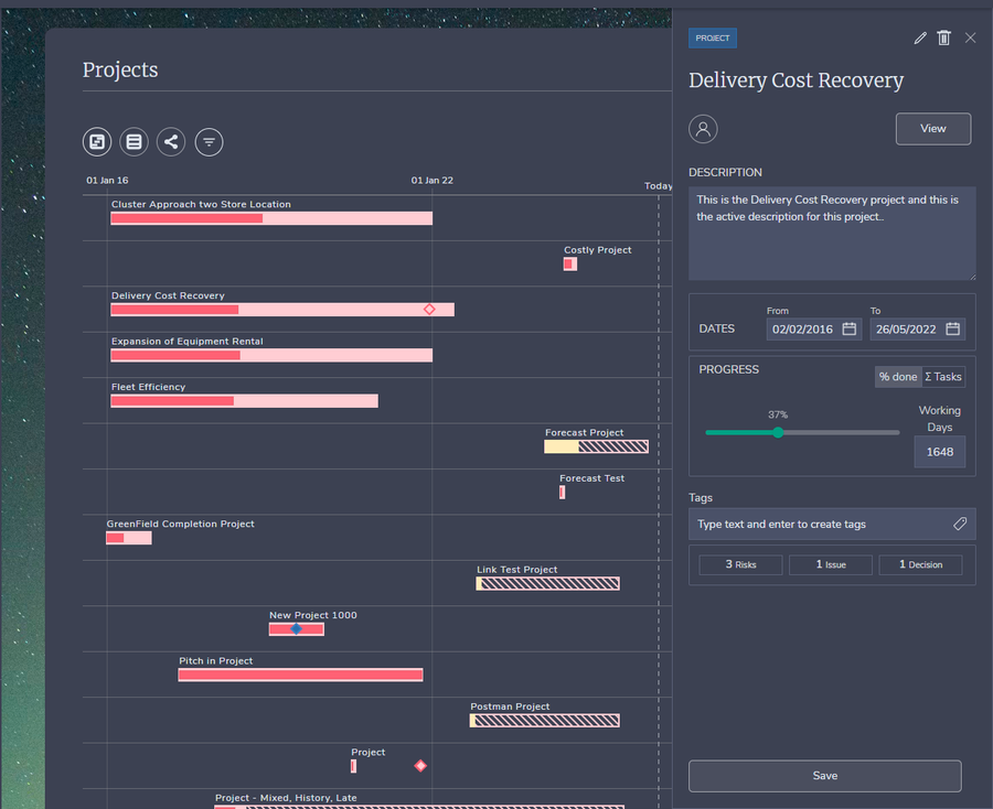 Comprehensive reporting across your entire strategy and portfolio: milestones, RACI, dependencies, risks, decisions and benefits. Everything strategy and PMO teams need in one place.